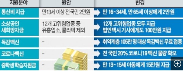 16~34세/ 65세 이상에 선별지급하게 되며 대신 독감 무료백신접종대상을 100만명가량 늘리기로 했습니다.